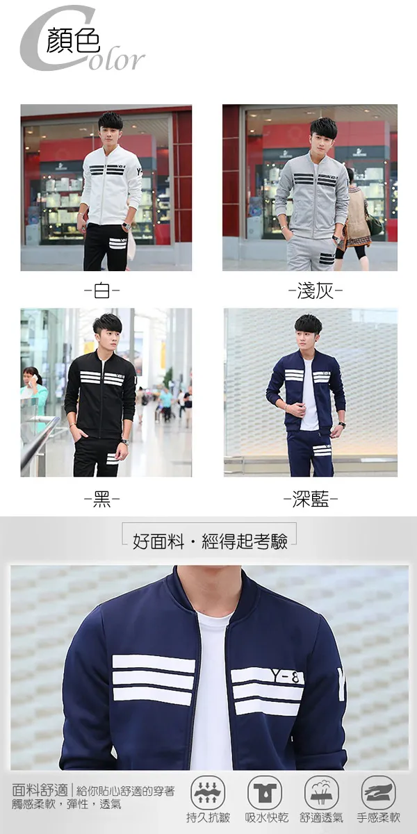 棒球風立領拉鍊修身休閒套裝-四色5碼 P5009