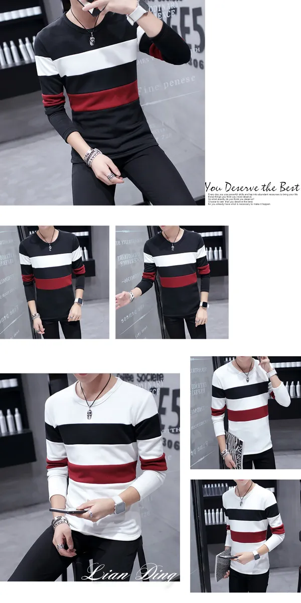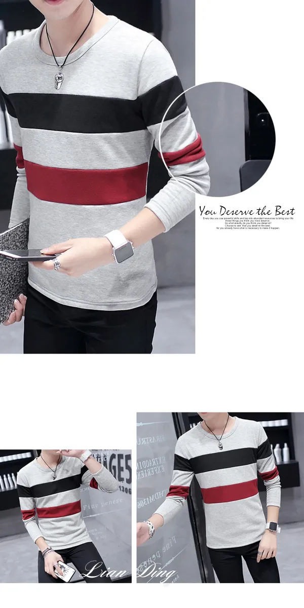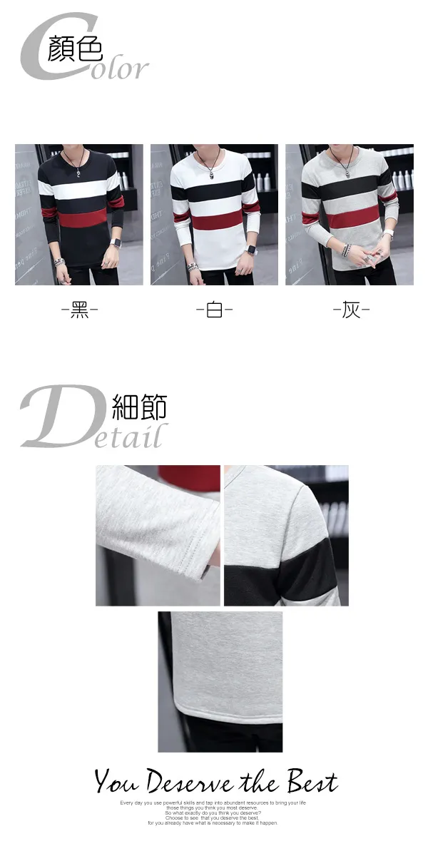 【加絨加厚】拼色條紋T桖-三色5碼 GM165109