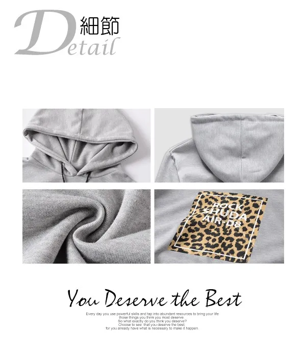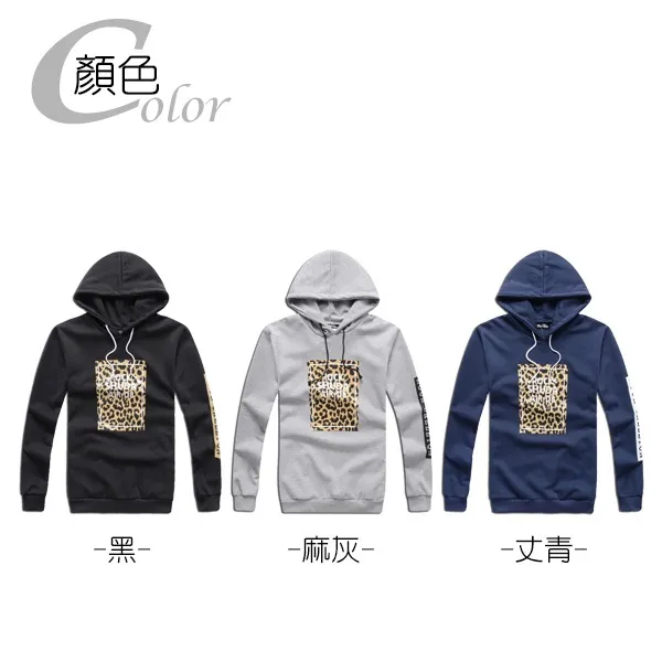 豹紋圖案側袖印花螺紋連帽長T-三色3碼 95167