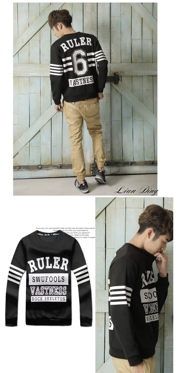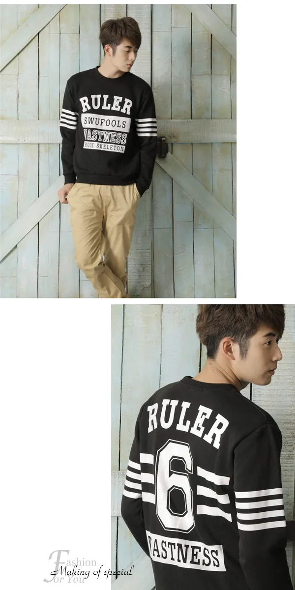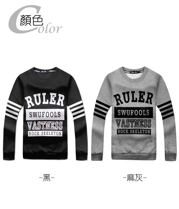 美式橫條雙面刷毛長T-二色3碼 75013