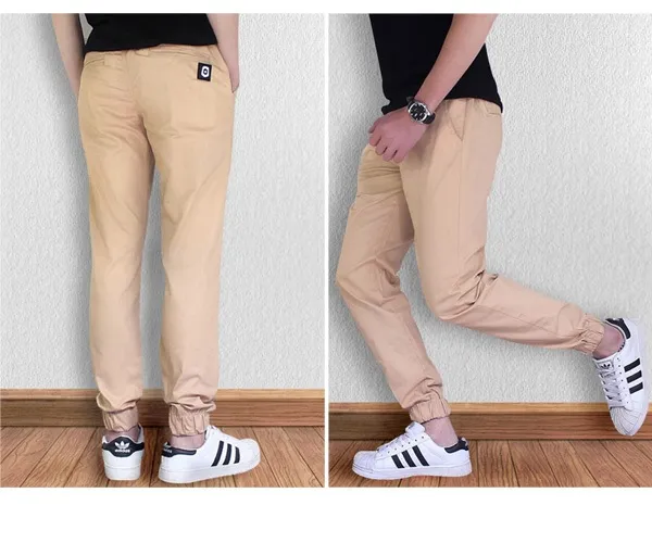韓系素色皮標抽繩縮口褲-4色/M-2XL碼【M55601】