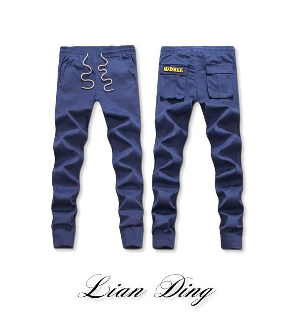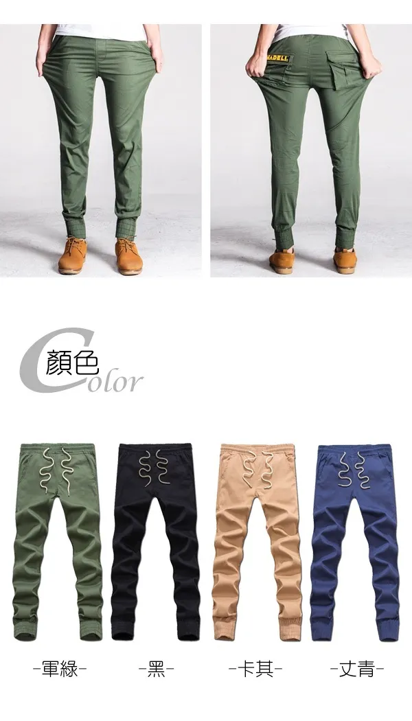 韓版素面後標抽繩彈性縮口褲-4色/28-34腰【M55559】