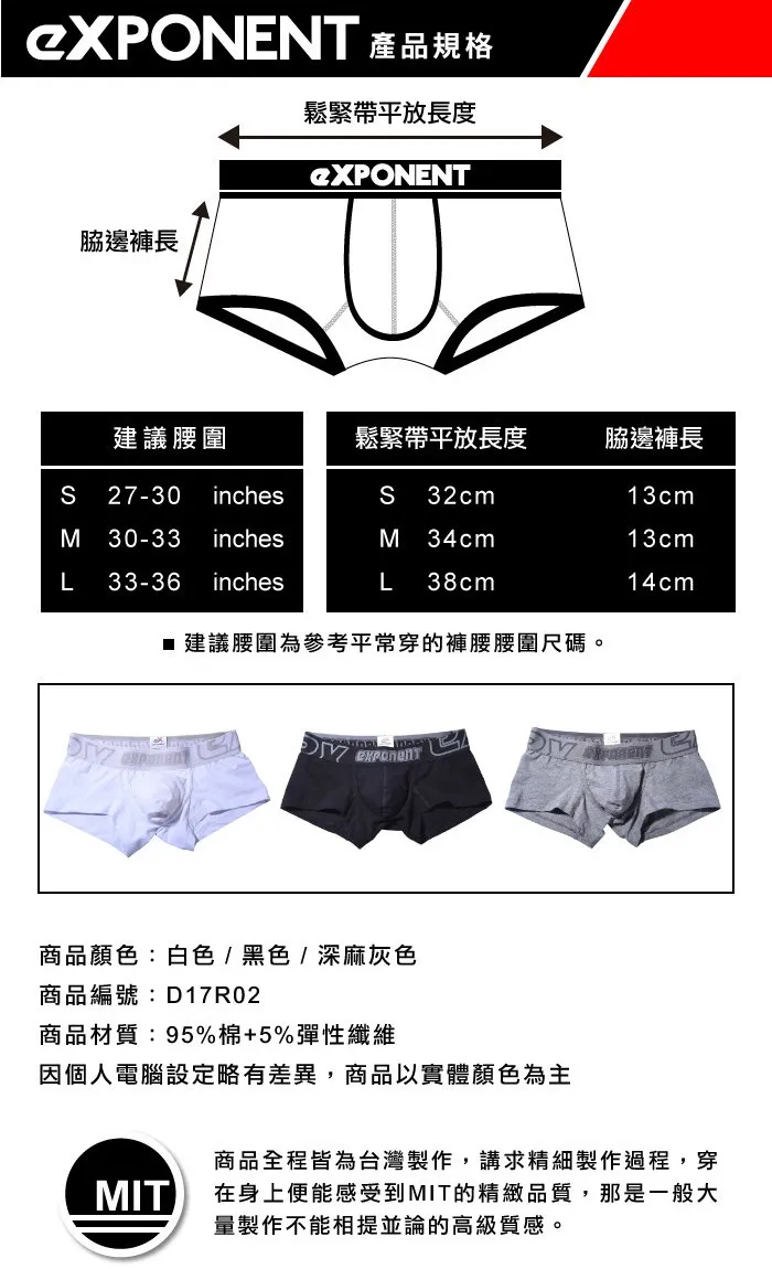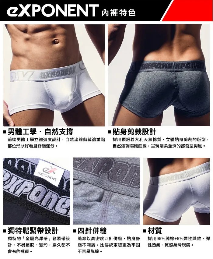 eXPONENT 都會型男 舒活棉四角內褲 (深麻灰色) D17R0214