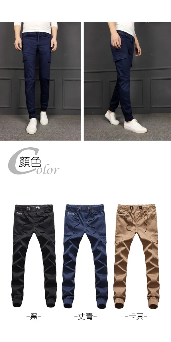 素面拼接抽繩休閒束口褲-3色/S-2XL碼【M55592】