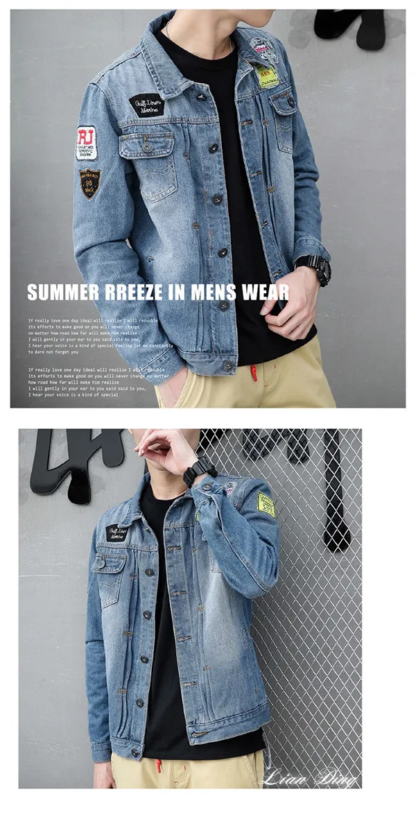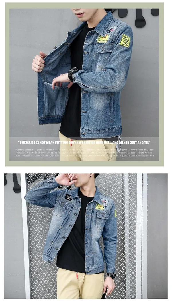 韓版logo刺繡拼接修身牛仔外套/M-5XL碼【PBL582064】