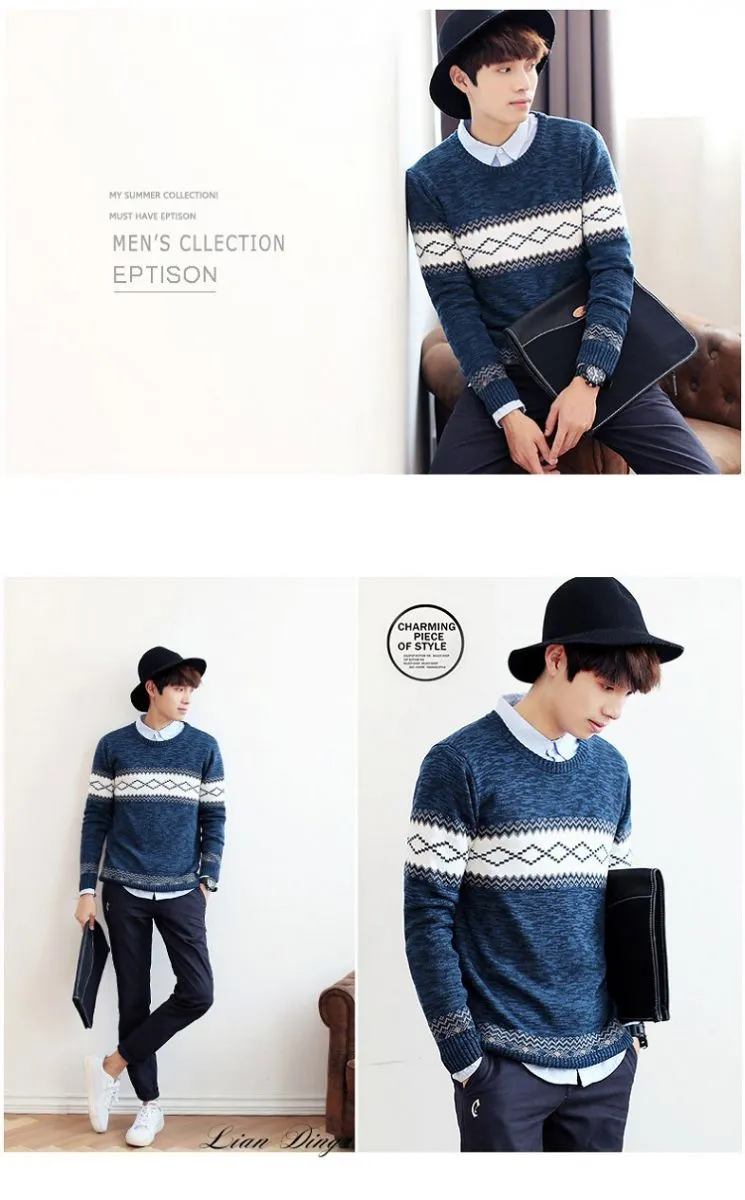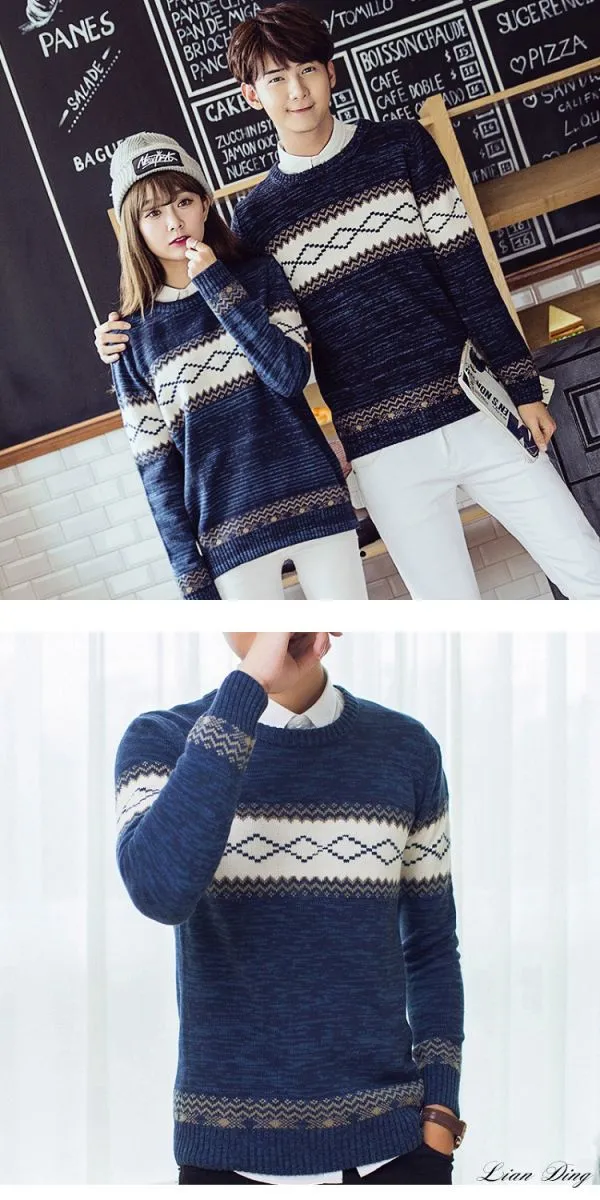 韓版學院氣質風針織毛衣衫-丈青/M碼-2XL碼 P10099