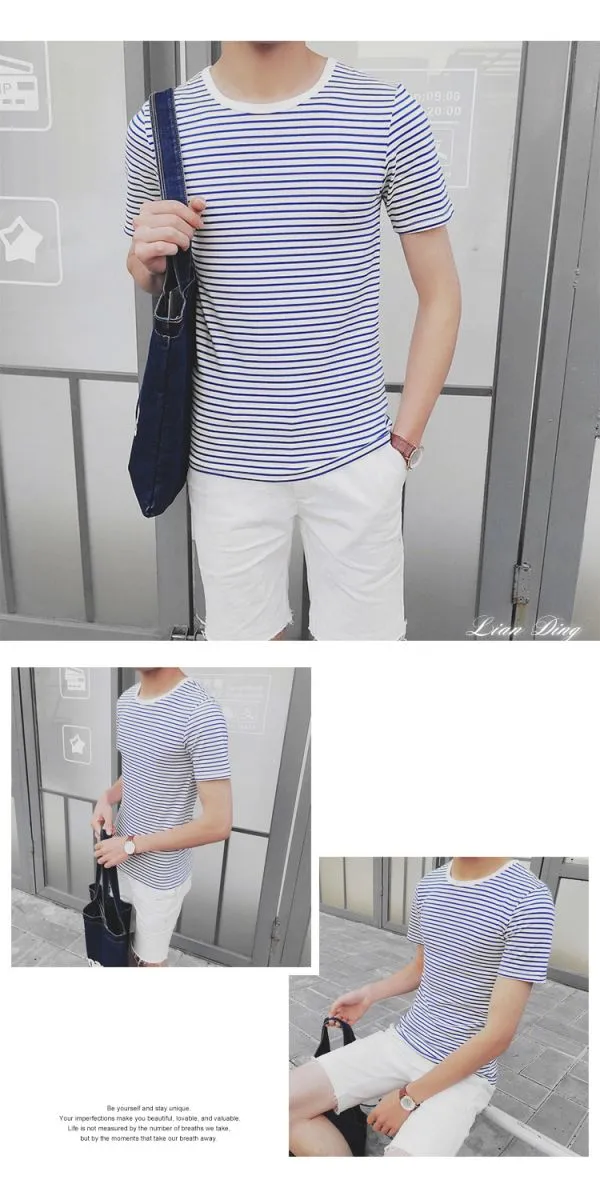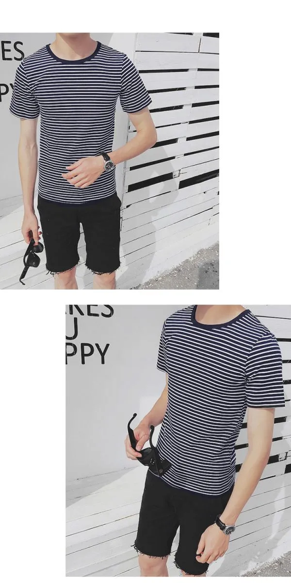 韓潮流修身條紋短T-4色/L-2XL碼【6801】