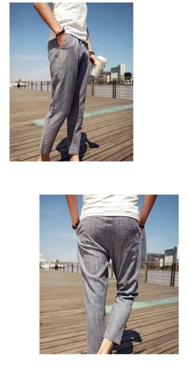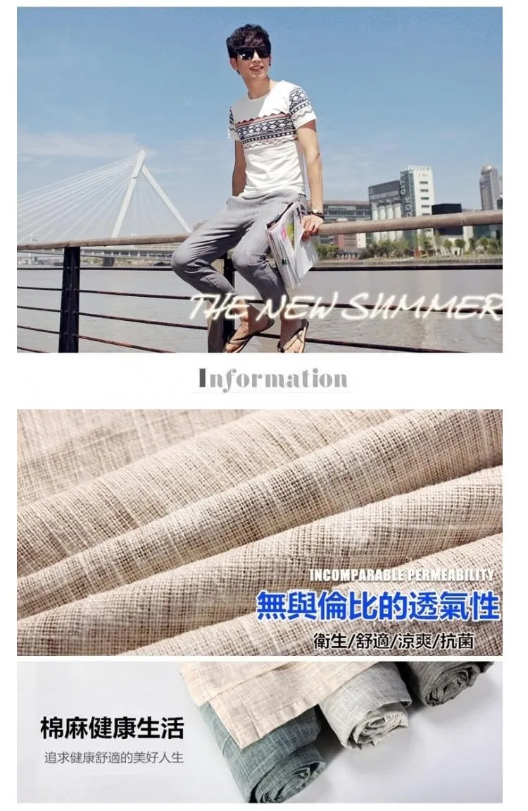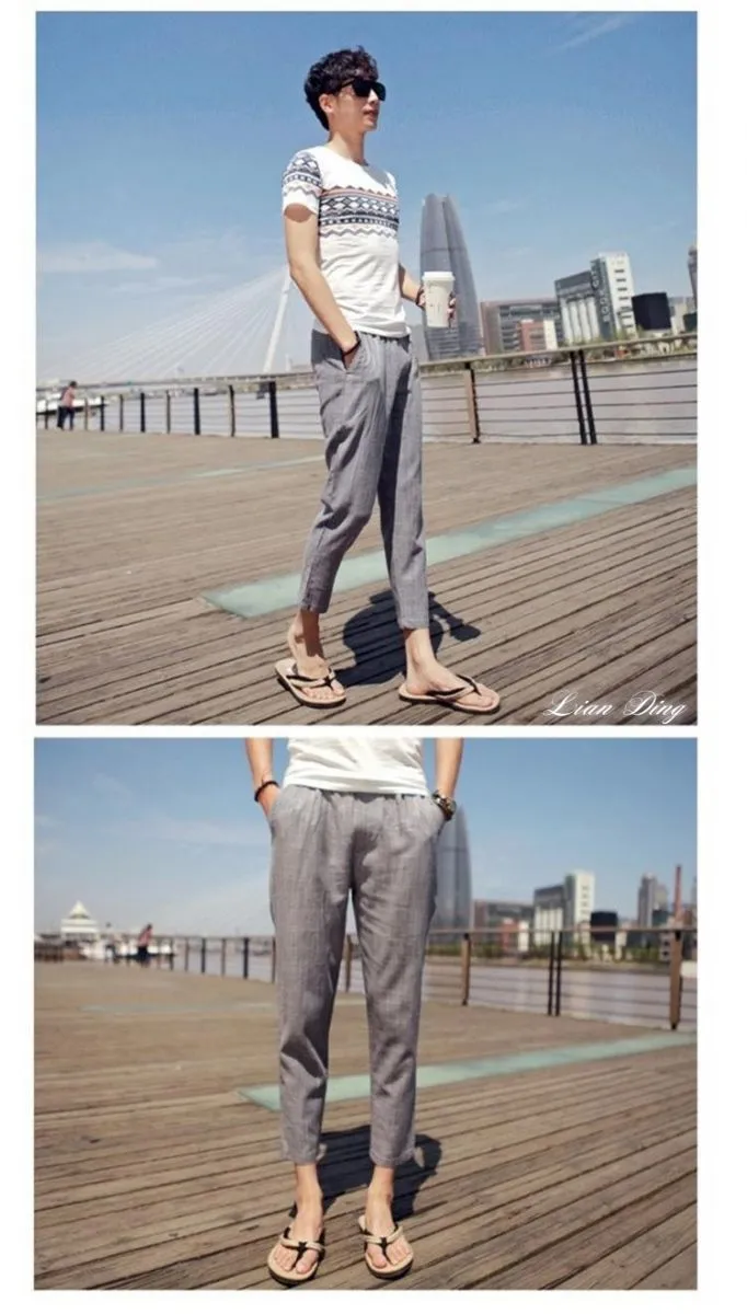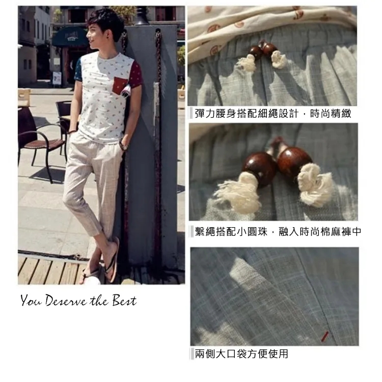 韓式混色涼感抽繩七分麻褲-4色/M-3XL碼【PBE317230】