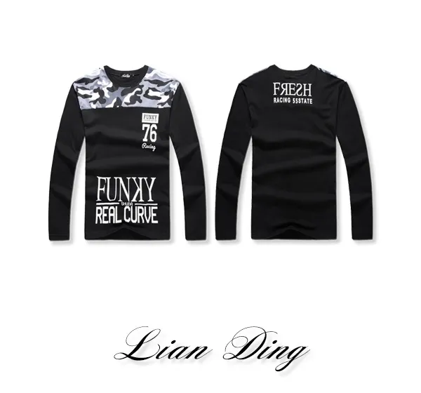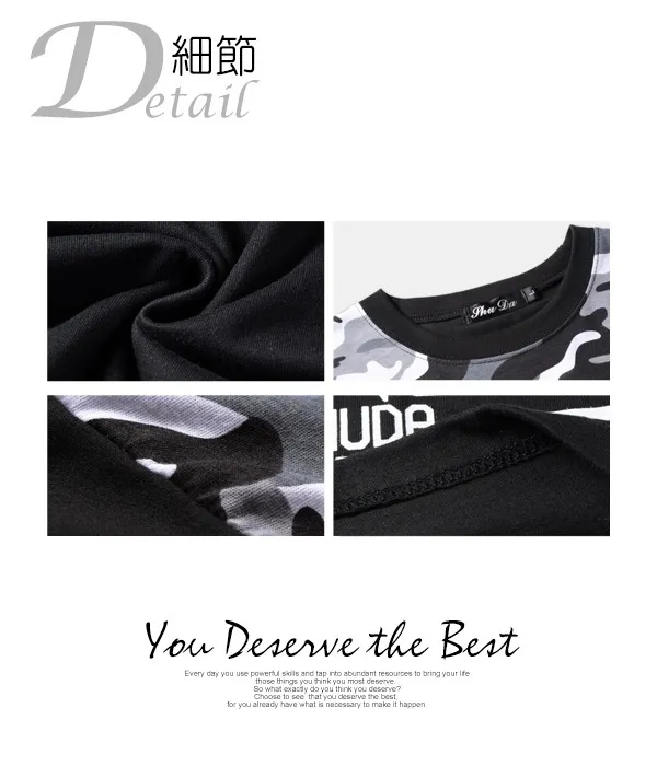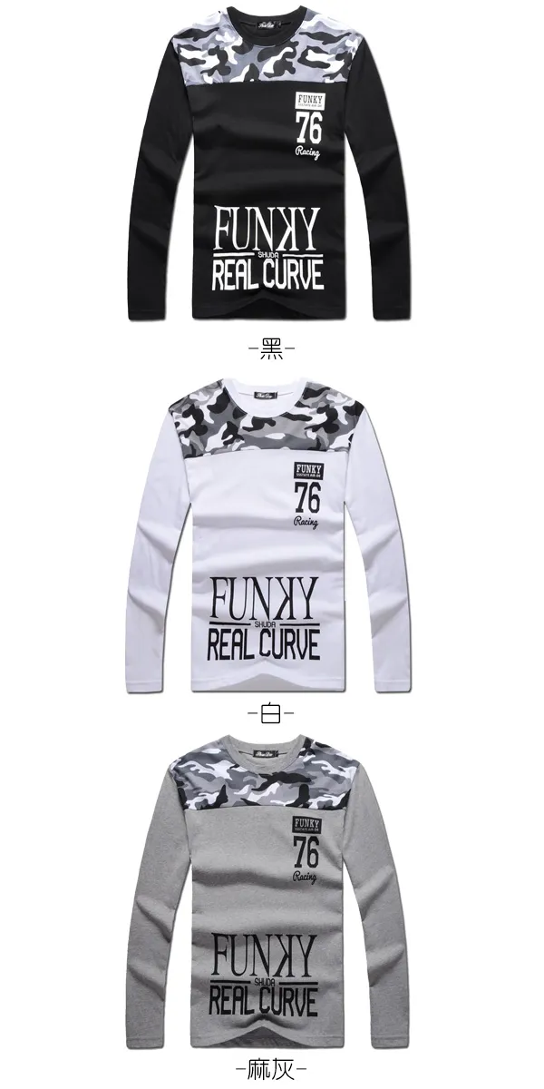 個性字母迷彩拼接長T-三色3碼 95023