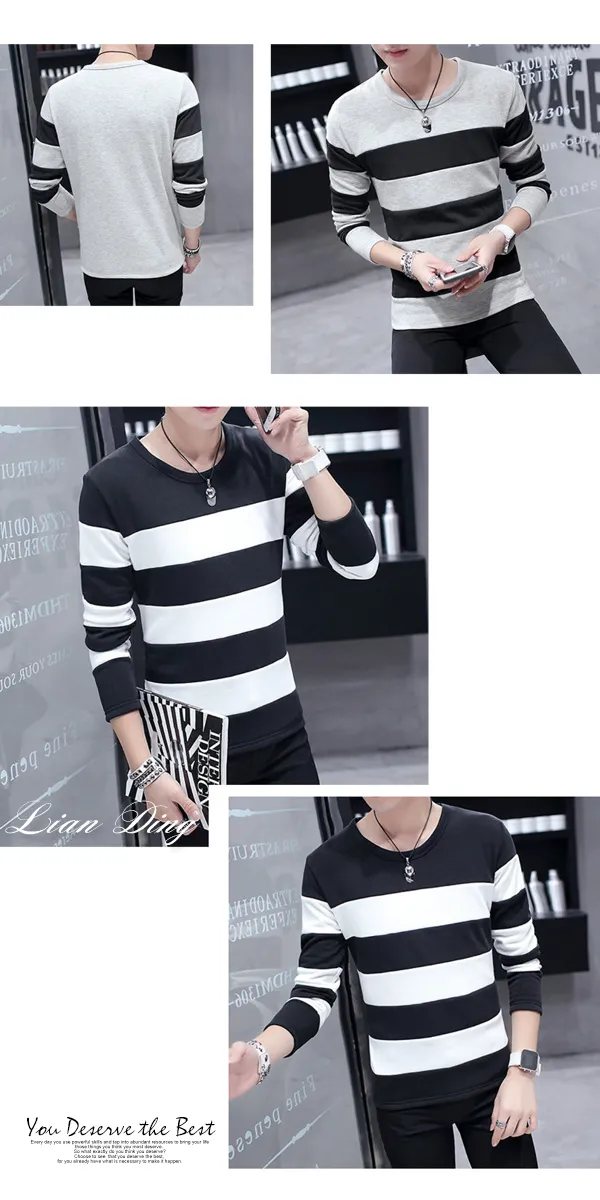 【加絨加厚】寬條紋線撞色感長T-三色5碼 GM165115