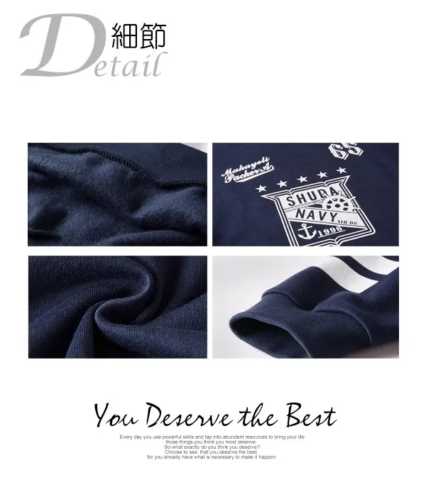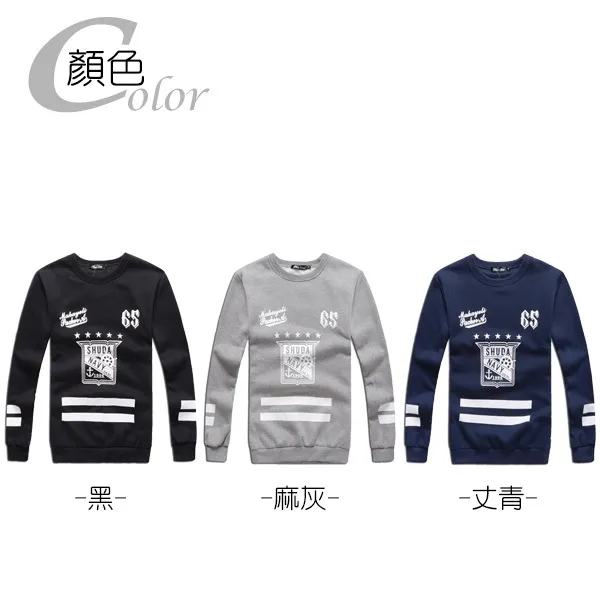 個性LOGO橫條印花保暖刷毛長T-三色3碼 95159